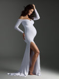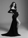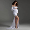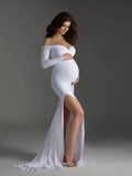 Maternity clothes-One-shoulder V-neck hem slit trailing tail dress