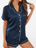 Women's Striped Cropped Shirt + Shorts Pajama Set